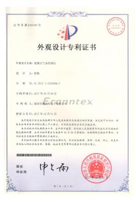 便攜式氣體檢測儀外觀設(shè)計專利證書